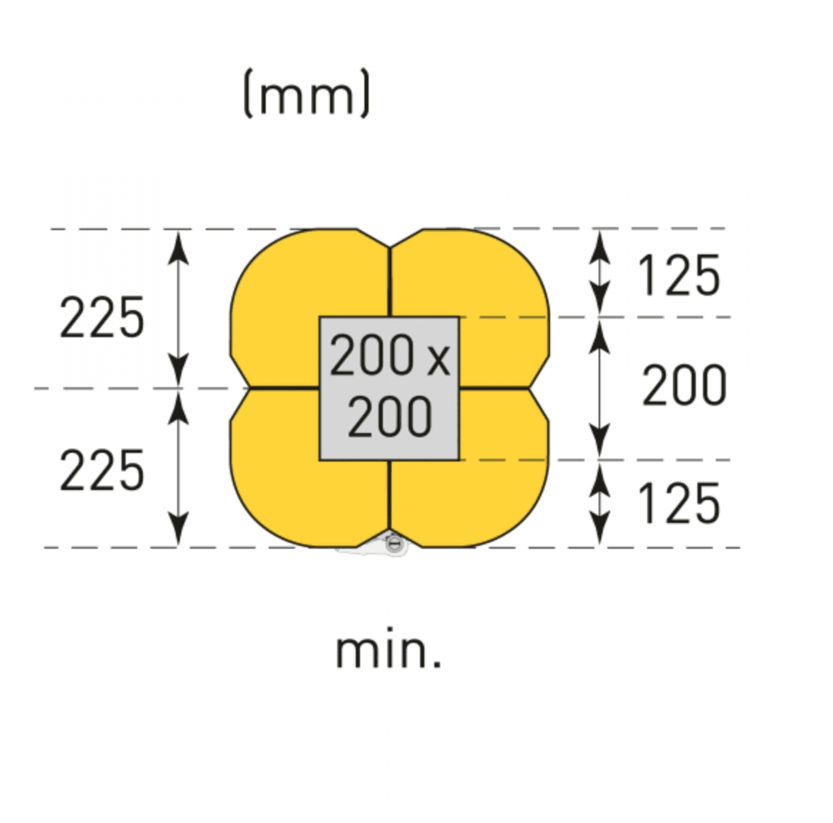 Met de apart verkrijgbare verbredingselementen kan de zuilbeschermer met 200mm worden verbreed zodat zuilen tot 600 x 600 mm kunnen worden beschermd. Hiervoor zijn ook twee extra spanbanden van 4 meter nodig.