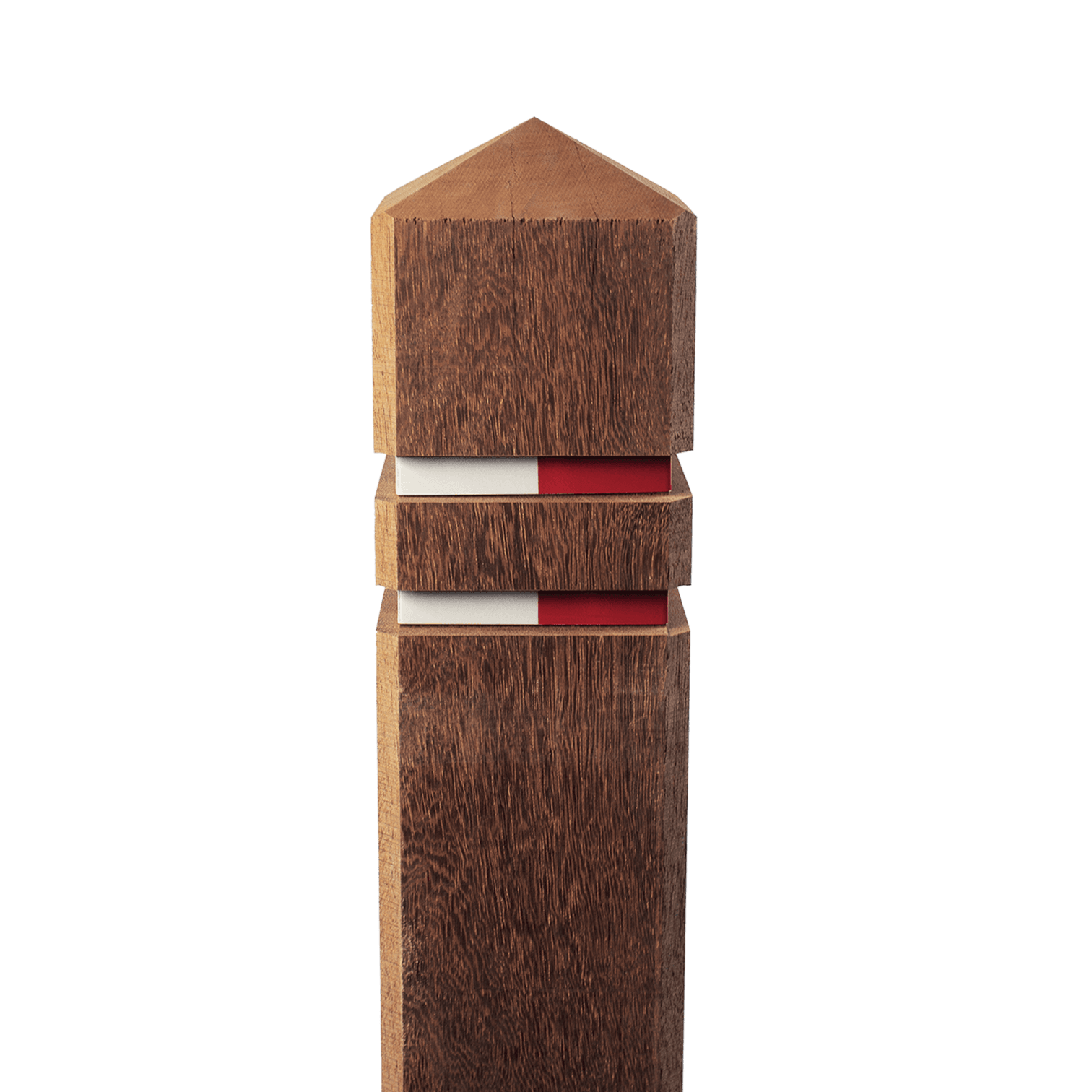TrafficSupply vierkante massieve anti parkeerpaal, FSC Azobe hout diamantkoppaal, vierzijdig geschaafd, afmeting 140x140x1400mm + twee ingefreesde reflectorbanden rood/wit, circa 24kg