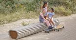 Het zitvlak bestaat uit 18 afgeronde planken van 4.5 x 6 cm die op 4 kunststof platen van 300 mm dikte bevestigd worden. Deze 4 platen vormen de ribben van de hele bank. De zitbank heeft een afgeronde vorm die zorgt voor een comfortabele zithouding.